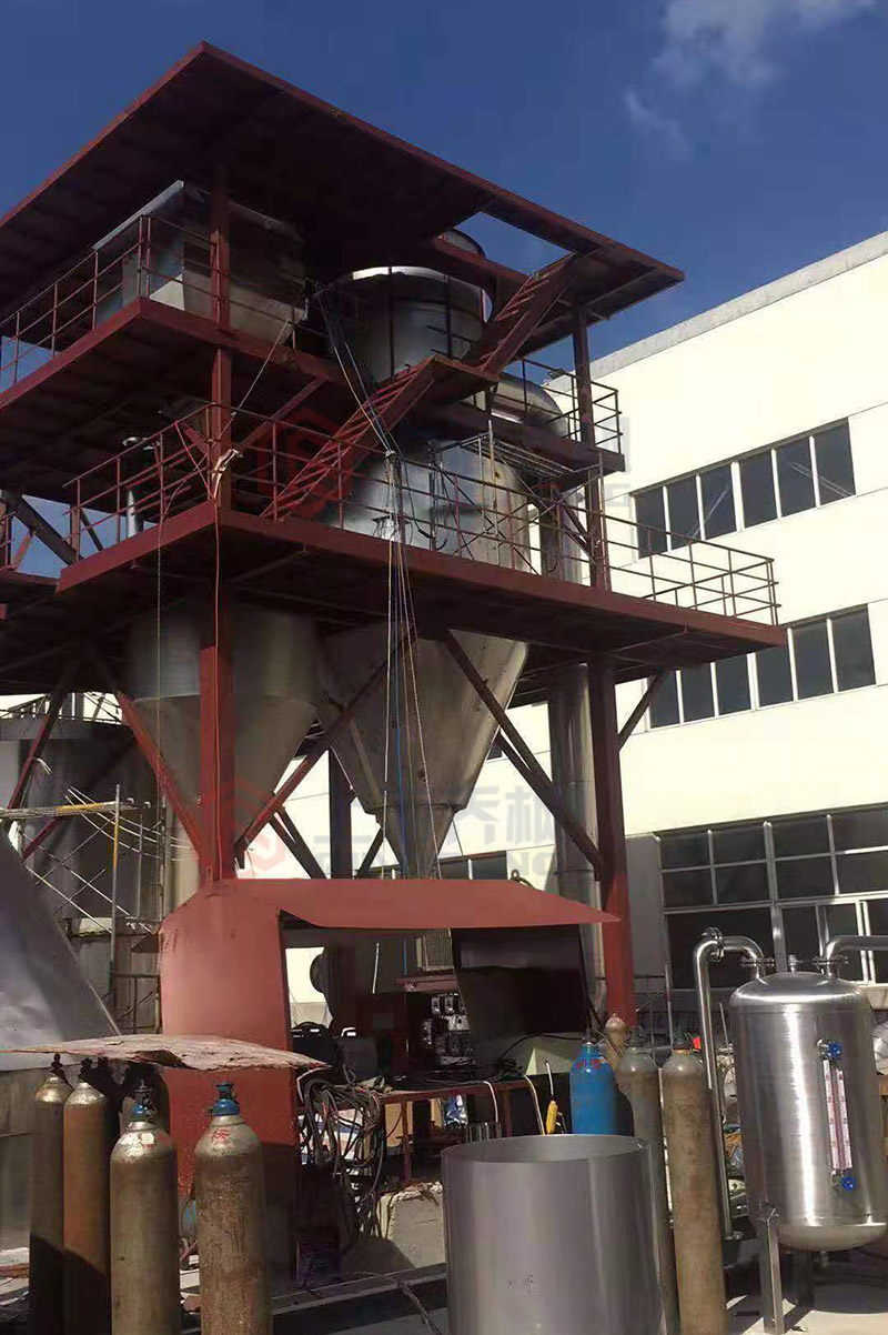 The material is pressed into the spray gun by the multi head feed pump, and the feed system is linked with the outlet air temperature to ensure the stability of the outlet material