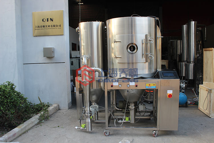 3.離心噴霧干燥機霧化器的速度可通過變頻調節,產品粒度易于控制。 所得產物粒徑均勻,流動性好,溶解性好,產品純度高。