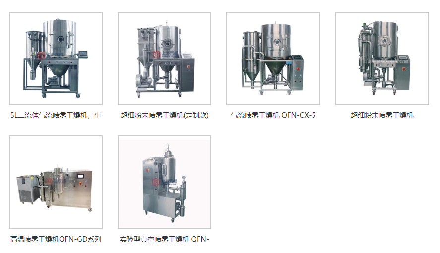 氣流噴霧干燥機型號大全QFN-E-5  QFN-CX-5  QFN-CX-3  真空噴霧干燥機型號:QFN-VSD-1  高溫噴霧干燥機型號:QFN-GD-1  QFN-GD-3  QFN-GD-5