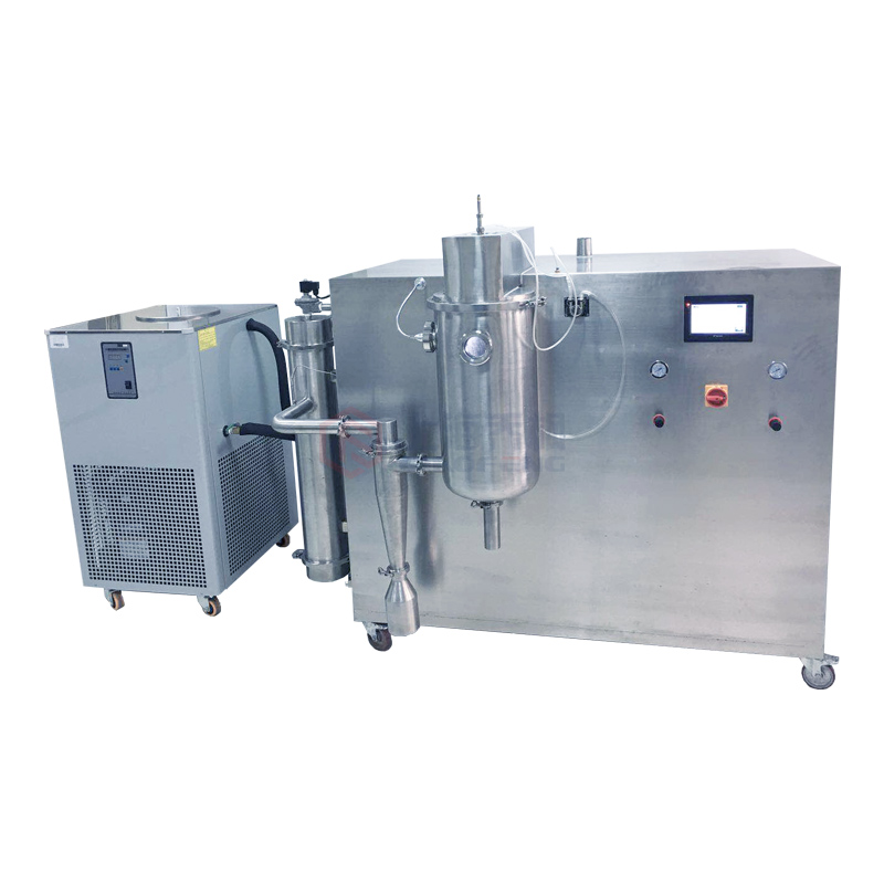 低溫噴霧干燥機及其主要適用于高校、研究所和食品,醫(yī)藥,化工,企業(yè),實驗室生產(chǎn)微量顆粒粉末,對溶液如乳濁液、懸浮液具有廣譜適用性, 適用于對熱敏感性物的干燥如生物制品、生物農(nóng)藥、酶制劑等,因所噴出的物料只是在噴成霧狀大小霧滴時,才受到干燥風(fēng)系統(tǒng),故只是瞬間受熱,能保持這些活性材料在干燥后仍維持其活性成份不受破壞。該型噴霧干燥機可以實現(xiàn)在常溫下進行噴霧干燥的低溫霧化干燥及高低溫霧化干燥兩用機型。